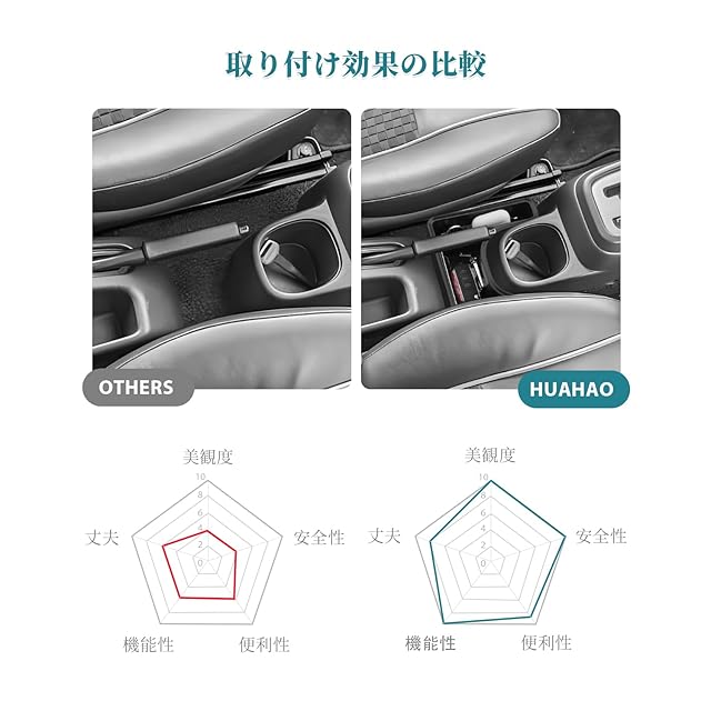 【HUAHAOコンソールトレイ ・ティッシュ置き】センターコンソールのスペースを活用し、広い二段収納スペースを提供します。スマホ、カード、コイン、メガネや鍵など、小物の収納に最適です。トレイの中央にはティッシュを取り出すための切り欠きがあり、ティッシュ置き場の悩みを解消します。それに、滑り止めのラバーマット付きで運転中のガタガタを防ぎます。汚れが付いたら水洗いも可能です。車種専用で車内の雰囲気にマッチし、ドレスアップと高級感の向上を実現します。