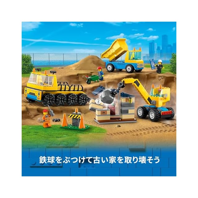 4才以上のお子さまへ贈るおもちゃの重機 – 組み立てとごっこ遊びの楽しさをお子さまと分かち合えるレゴシティ トラックと鉄球クレーン車(60391)