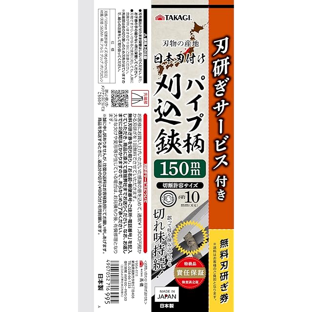 高儀(Takagi) 日本製 パイプ柄 刈込鋏 150mm 枝の剪定 切れ味持続 日本刃付け 薄刃仕上げ 刃研ぎサービス付き 切断許容サイズφ約10mm ハサミ 高儀 たかぎ