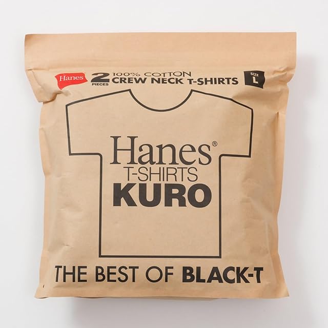 [Hanes] 2枚組 半袖 KURO 綿100% 丸胴仕様 タグレス仕様 ヘインズ Tシャツ 黒 クルーネックTシャツ アンダーウェアトップス メンズ ブラック