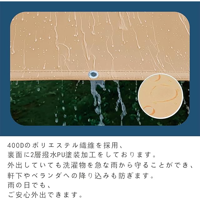 【防水機能が抜群生地】高品質防水ポリエステル生地とは風、熱、風邪、酸化、腐食および放射線に強いという生地です、防水加工があり、窓、庭、ベランダやその他室外によく使用されている。使わない時は折りたたんで収納できる。