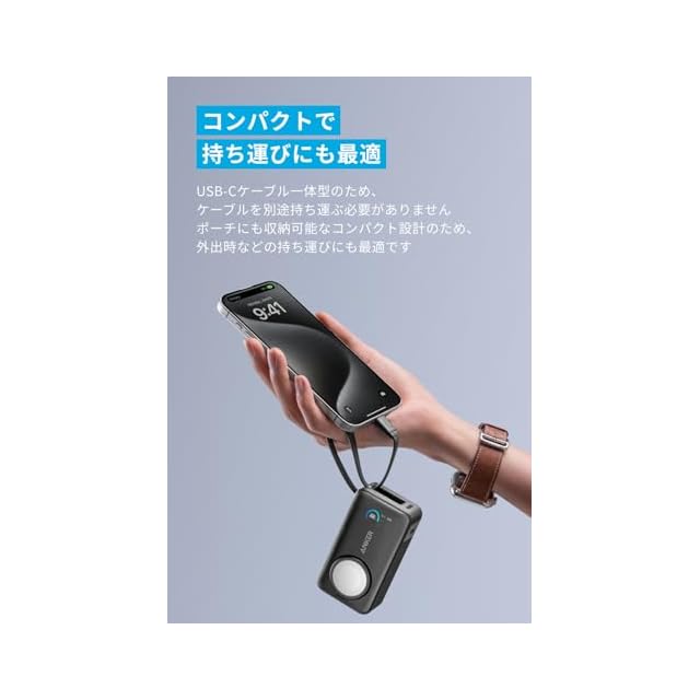 コンパクトで持ち運びにも最適:USB-Cケーブル一体型のため、USB-Cケーブルを別途持ち運ぶ必要がありません。ポーチにも収納可能なコンパクト設計のため、外出時などの持ち運びにも最適です。