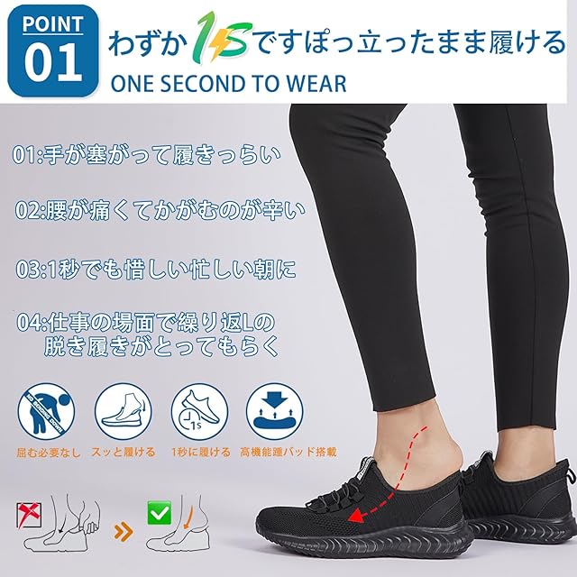 【たった1秒で立ったまま履ける、着脱簡単】手を使わず、靴ベラも不要。忙しい朝や外出時でも、ストレスフリーの履き心地を実現。 特殊なかかとの構造で、45°の広い入口角度とトリプル補強のヒールカウンターが、スムーズな履き脱ぎと姿勢サポートを実現。 柔らかい綿の裏地を採用し、足への負担を最小限に抑え、快適な履き心地を実現。実際にご利用いただいたお客様からは『まるで足にフィットするクッションのような感覚』と高評価をいただいています。 年配の方や妊娠中の方、そして忙しい日常生活で頻繁に靴を脱ぎ履きする方にもぴったり。毎日の負担を軽減し、快適な生活をサポートします。 通学靴やスニーカーとしても活躍します。