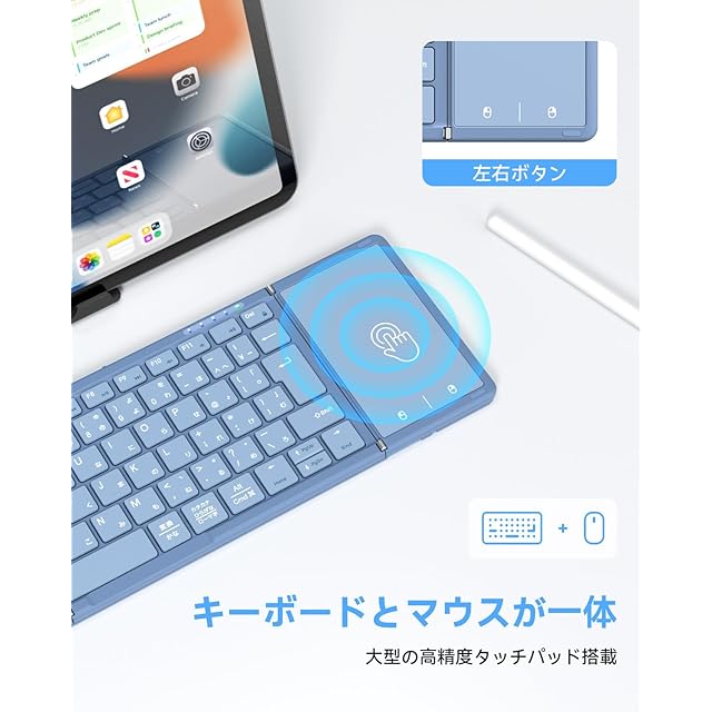 【最新型】Omikamo キーボード bluetooth 折り畳み式 ワイヤレス JIS標準日本語配列 ipad キーボード スマホ マルチペアリング タッチパッド付き iOS/Windows/Android/Mac/Google対応 無線 コンパクト 軽量 薄型 ipad mini パンタグラフ 充電式(ブルー)