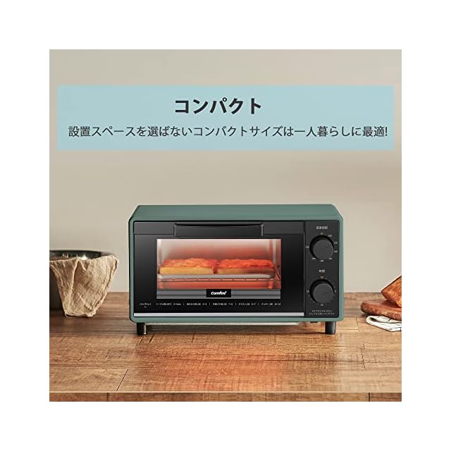 COMFEE' オーブントースター 8L トースター 2枚焼き タイマー設定 80-230℃まで 温度調節 1000W 上下高火力 コンパクト設計 お手入れ簡単 トレー付き CF-CD083 フォレストグリーン【1年メーカー】