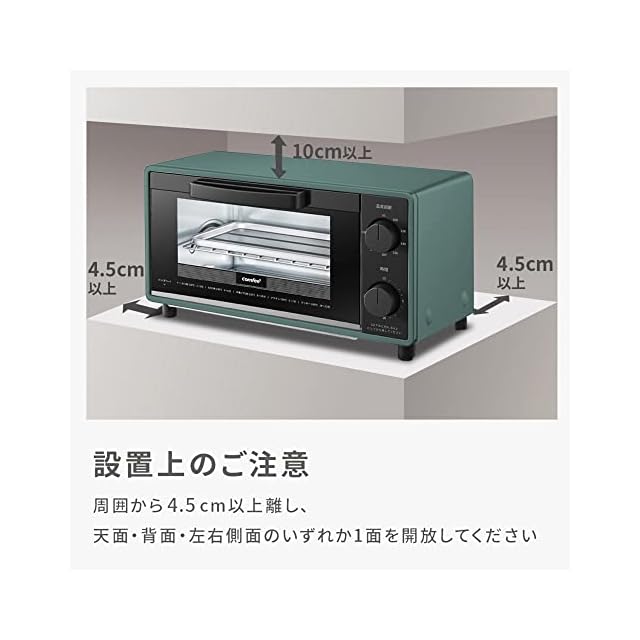 【一人暮らしに最適】本オープントースターは全体的にコンパクトですが、庫内には2枚のトーストを同時に焼けるだけのスペースがあります。レンジ台にも設置できる省スペース設計になっています。
