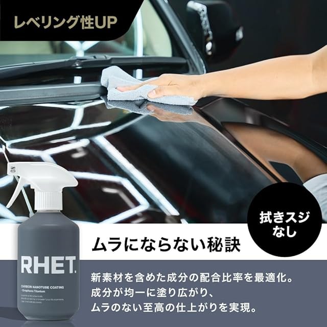 ✅【RHET.史上最高の施工クオリティ】次世代型新素材カーボンナノチューブ、高密度・高硬度シリコンに、最高級素材(チタン、グラフェン、カルナバ、シリカ)を配合。撥水・艶がさらにパワーアップ。