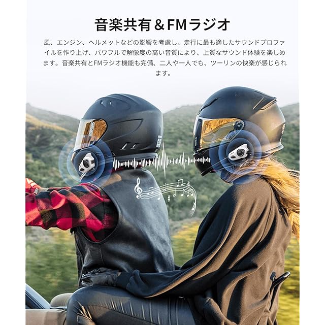 ✅【音楽ながら通話&音楽共有・ENC2.0&DSP&CVC8.0ノイズキャンセル】2枚Qualcommチップのおかげで、音楽、地図ナビアプリなどが再生中、同時にインカム通話対応なので、頻繁の操作を省き、ライディングに専念できます。音楽共有機能あり、恋人、夫婦、友人とか2人のライダーが走行中に同じ音楽を楽しむことができます。最新のENC2.0、DSPとCVC8.0三重騒音抑制技術を導入、2つ濾波器(ノイズフィルタ)備え、バイク用インカムのマイクが環境騒音を収集して対等の逆音波で騒音を抑制し、街の喧噪、通話エコー、風切り音やエンジンなどノイズを約90%以上除去できます。相手からの声や携帯電話からの音楽などが鮮明に聞こえ、この上クリアな音声を相手に伝えます。(※音楽共有距離は10M)
