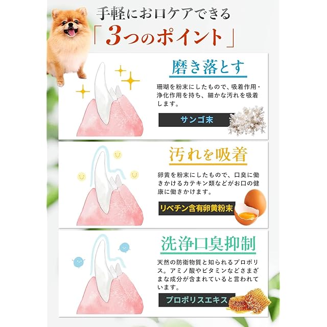 【舐めるだけ美味しくケア✨】舐めさせるだけで歯石除去(歯石取り)や口臭ケアを実現!直接舐めさせても、お水やフードに混ぜたりしてあげてもOK。歯磨きシート(歯ブラシ)と併用してお使いもしていただけます。