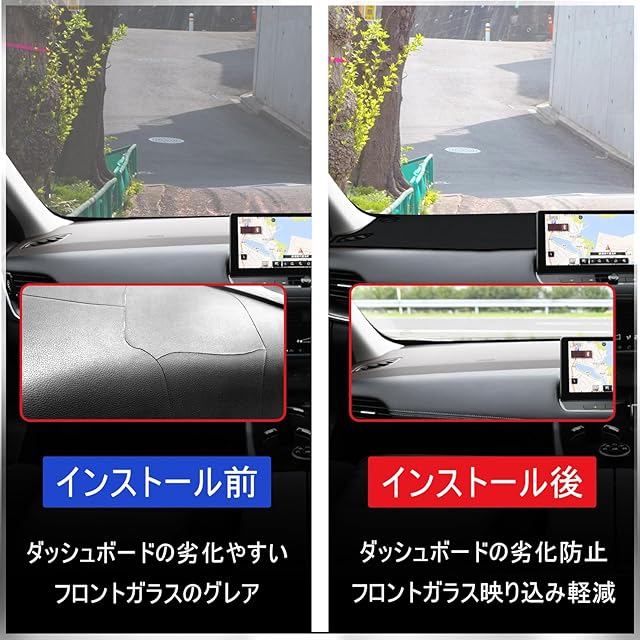 【フロントガラス映り込み軽減】ダッシュボードはいつも視界に入る場所です。ダッシュマットを装着することで視覚的に満足のいくドレスアップ。フロントガラスへの光の反射も防げるので、視界をクリアに確保し、運転に集中できると思います。