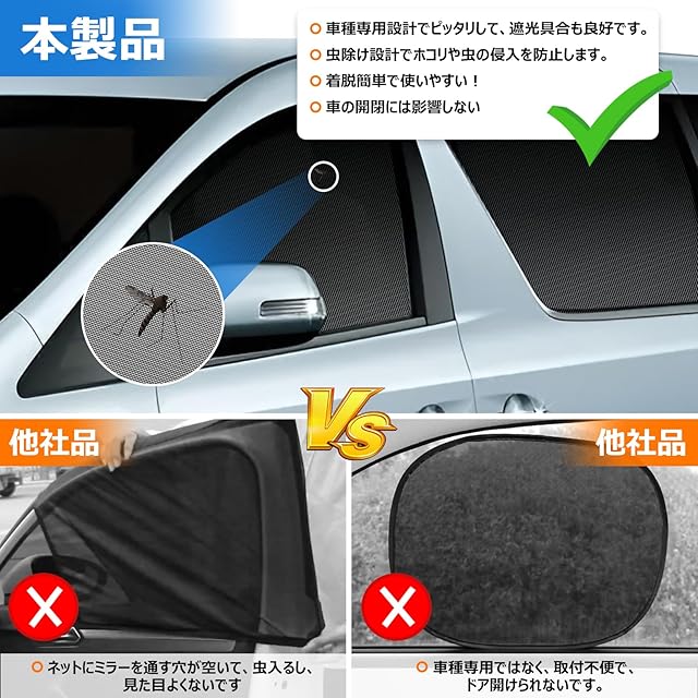 【車種専用設計】自動車のフロントガラスの大きさ・形状は、その車種ごとにバラバラです。従来品は車種専用のデザインではなくて、窓の形にフィットしません、隙間のあるし、プライバシーを守りません、装着した後、倒れる場合もあります。本社の製品は車種専用デザインで、隙間はありませんし、装着完了した後、倒れません。※車種専用サイズですが、工人は一つずつ生産なので、まったく隙間ないことではなく、多少の隙間やゆがみがあることはご承知おきください。※商品はガラスの隙間に挿すことではなく、窓枠の上に置いてください、窓枠に向かって設計サイズですが、ガラスに挿しましたら小さくか大きくなります!車種構造によって、一部の車種はマグネット式でも付属品の使用が必要になります、ご了承ください※一部の車種は構造差のため、ドアを開けると外れる恐れがございますが、付属の固定工具をつけて使えてください
