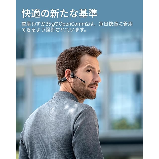 Shokz (ショックス) OpenComm2 2025 Upgrade ビジネスイヤホン 骨伝導 ワイヤレス bluetooth5.1 オープンイヤーヘッドホン 耳を塞がない 自動ペアリングヘッドフォン マイク付き 技適認証済み ノイズキャンセリングマイク USB-C充電 クリアな通話体験 ハンズフリー通話/テレワーク/Web会議 16時間連続再生 ブラック