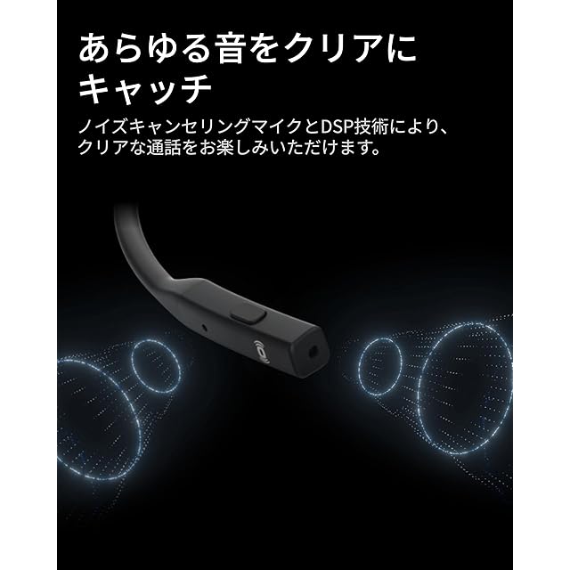 クリアな通話、DSP技術の魅力:DSPテクノロジーとノイズキャンセリングマイクの組み合わせにより、クリアな通話を実現し、周囲のノイズを効果的に除去して高品質な通話が楽しめます。第7世代の骨伝導テクノロジーは、通話の重要な瞬間を明瞭に伝え、中音域と高音域の声を精確に収音・補正し、すべての単語をはっきりと聞き取ることが可能です。