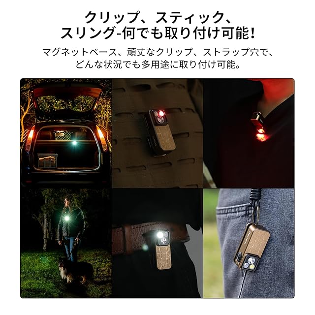 [持ち運びに便利なコンパクト] クリップでベルト、服、帽子やズボンにしっかりと挟まれます。吊り下げ穴のデザインは吊り下げることができます。また、鉄や金属に吸着でき、両手を解放する利便性をお楽しみください。耐久性に優れたクリップは、対象物の厚さは14mmまで挟み可能です