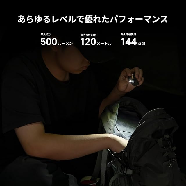 [3つの光源&多目的] Oclip Proはロービーム、ロー+ハイビーム、赤点灯という3種の光源を兼ね備えて、非常時には、ビーコンと赤色点滅モードを作動させ、位置信号や緊急警報を送ることができます。最大500ルーメンに出力して、照射距離最大約120メートルに達します。キャンプ、登山、ランニング、散歩、アウトドア作業、また家庭照明などに適しています