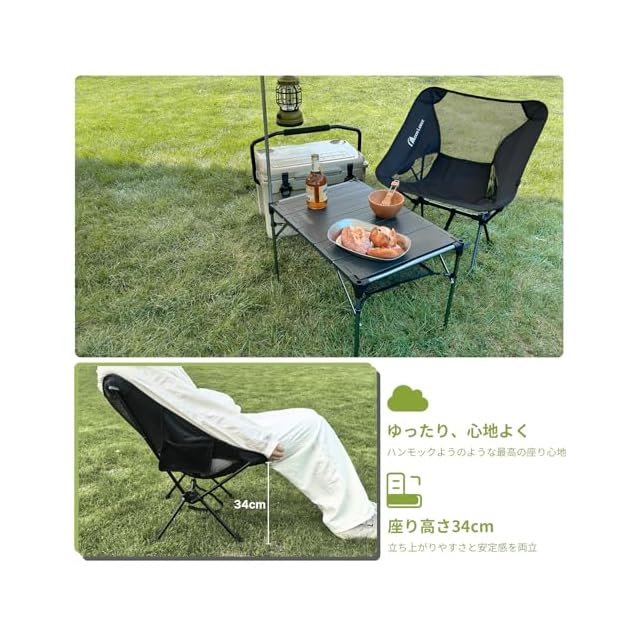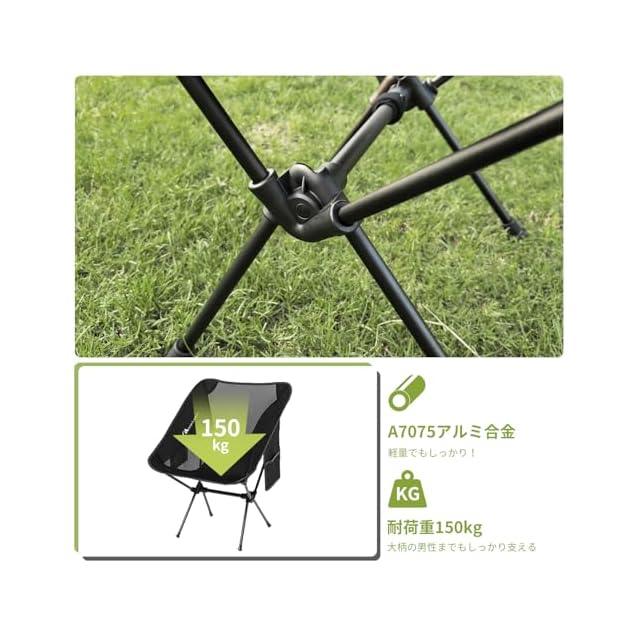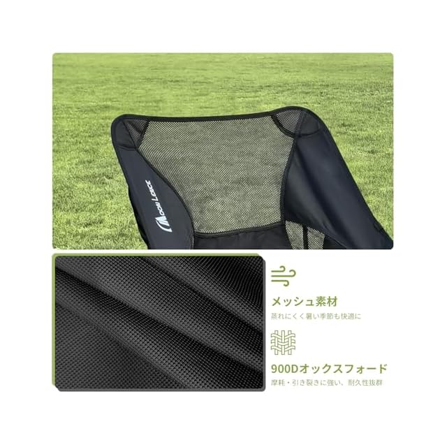 【優れた耐久性&通気性のキャンプ椅子】 フレームには高強度アルミ合金、シートには900Dオックスフォード+メッシュ生地を使用。耐荷重150kgで、大人も安心して使えます。通気性抜群で夏場も快適!