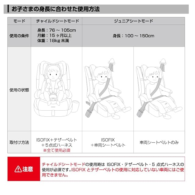 ポップピットG-ISOFIX対応モデルはチャイルドシートモード利用はISOFIXの使用が必須