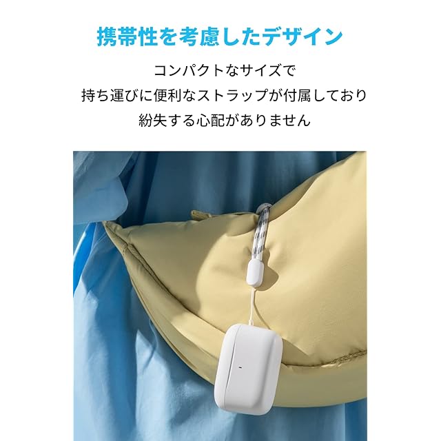 持ち運びに便利なミニマルなデザイン:ケースを含めて、わずか41.3gで小さく軽量です。ストラップが付属しており、アクセサリーのようにバッグに付けることも可能で持ち運びに最適です。