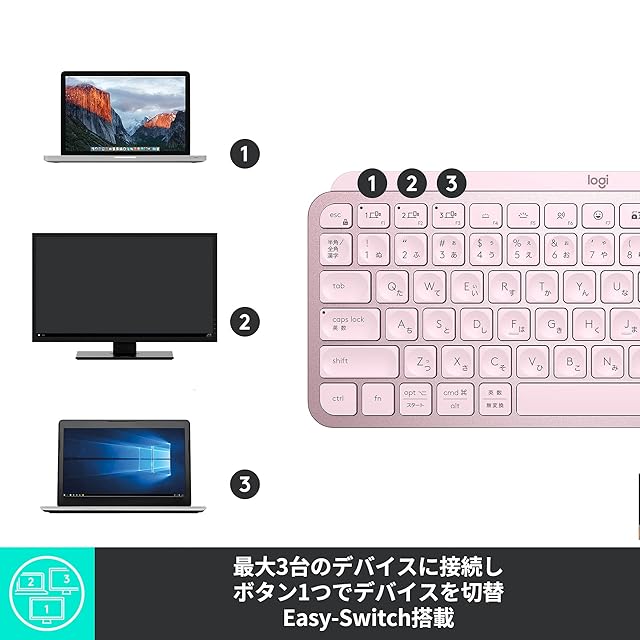 ロジクール MX KEYS mini KX700RO ミニマリスト ワイヤレス イルミネイテッド キーボード ローズ 充電式 bluetooth Logi Bolt Unifying非対応 USB-C-A 日本語配列 windows mac chrome ios Android 無線 ワイヤレスキーボード KX700 国内正規品