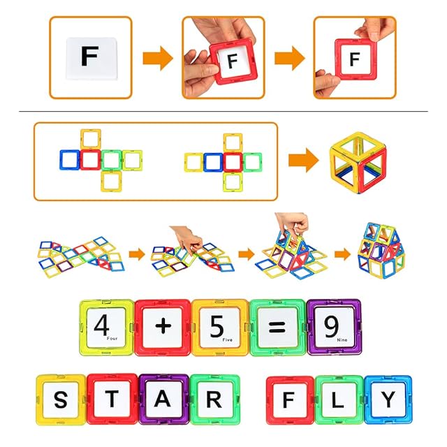 ✅【遊び方が無限大 ブロック知育玩具】:二次元の平面で作った展開図を、重心を持ち上げることで瞬時に3次元の立体に変形できますから、子供たちは平面(2D)と立体(3D)の関係を遊びながら覚えることができますし、自分の脳中の形を集中して作っていることで、創造性と想像力を鍛えるだけでなく、実践能力と論理的思想も開発できます。学習カードも付きで、計算の問題出しも楽しくなります。遊びと勉強が同時にできる磁気ブロックおもちゃです。(A・B・C、1・2・3などのカードは幼稚園幼児から遊べます。)