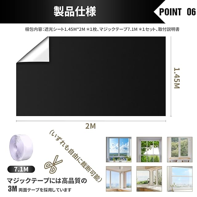 【様々なシーンで大活躍】防水効果もあるため、自宅の窓やバスルームのドアなど、テープが貼り付けられるところであればお好きにご使用していただけます。フリーカット可能だから、どんなサイズにも合わせやすいです。製品サイズは1.45*1 M、5.1 Mマジックシール付き。