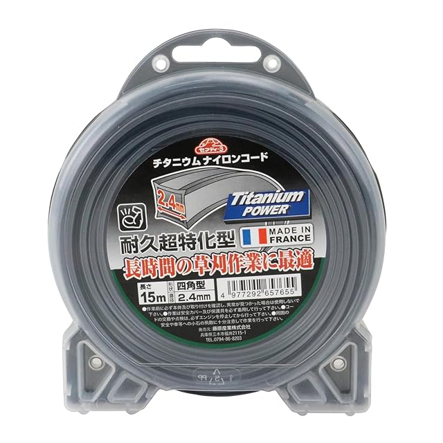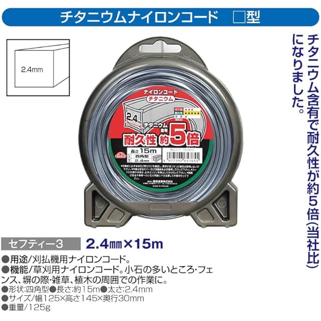セフティー3(Safety-3) 草刈・刈払機用 耐久性約5倍 チタニウムナイロンコード 15m 四角型 2.4mm径