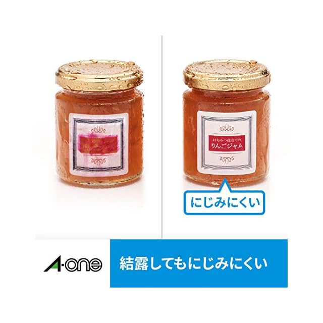 【水に強くにじまない、超耐水ラベルシール!】上質紙の表面は破れにくい加工を施している耐水性に優れたラベルシール。水にぬれても剝がれにくく、インクジェット印刷した文字やイラストもにじみません。