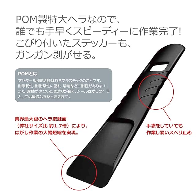 握りやすい大型ヘラ付き:POM製特大ヘラなので、誰でも手早くスピーディーに作業が完了できます。こびり付いたステッカーもガンガン剝がせます。