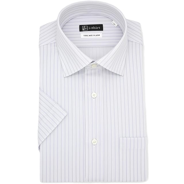 [アイシャツ] i-Shirt 完全ノーアイロン ストレッチ 超速乾 半袖 アイシャツ ワイシャツ メンズ L.グレー レギュラーフィット 半袖セミワイド ストライプ M16224001812 首回り41cm