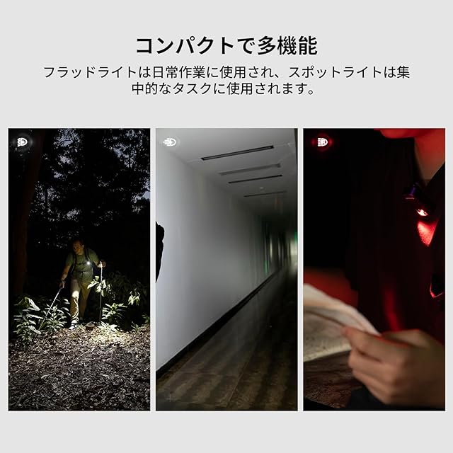 [3つの光源&多目的] Oclip Proはロービーム、ロー+ハイビーム、赤点灯という3種の光源を兼ね備えて、非常時には、ビーコンと赤色点滅モードを作動させ、位置信号や緊急警報を送ることができます。最大500ルーメンに出力して、照射距離最大約120メートルに達します。キャンプ、登山、ランニング、散歩、アウトドア作業、また家庭照明などに適しています