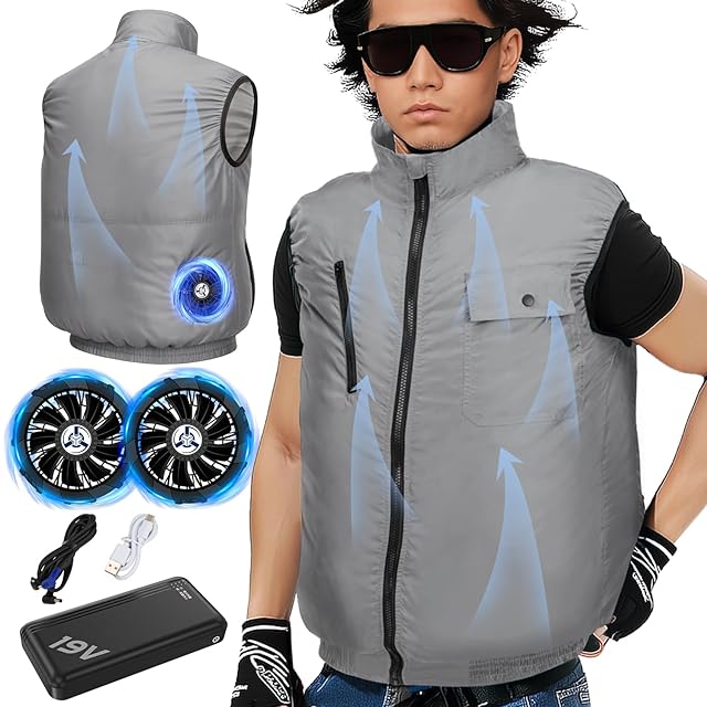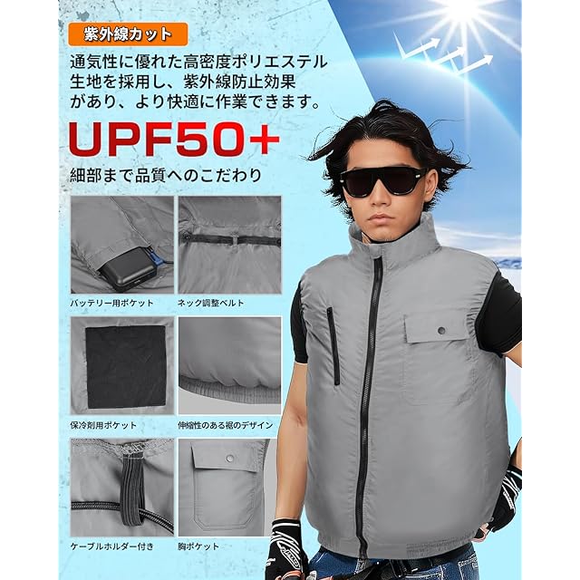 [Sumeriy] ファン付き作業服 空調作業服 ベスト 超高電圧出力 30000mAhバッテリ 最大30時間連続使用 ファン付きベスト 国産9枚ファン 大風量 静音 4段階風量調節 空調作業服 ファンバッテリーセット 薄型 吸汗速乾 UVカット 熱中症予防 暑さ対策 屋内外作業 通勤 ゴルフ 男女兼用 (2XL, グレー)