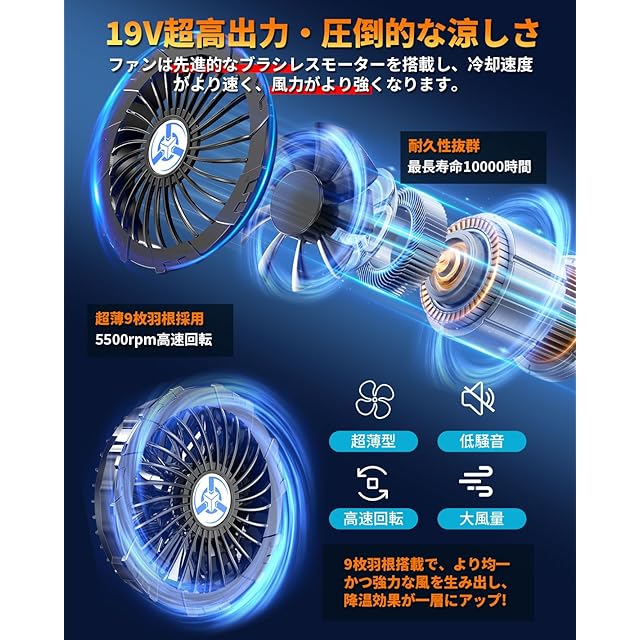 【夏に欠かせないアイテム】2025最新改良版ファン付き作業服は日本製9枚羽根ファンを採用しており、しっかりとした風量を確保しながらも静かな動作を実現します。効率的に空気を循環させ、瞬時に体感温度を下げます。炎天下でも極上の涼しさを実現し、作業効率の向上と熱中症の予防になります。