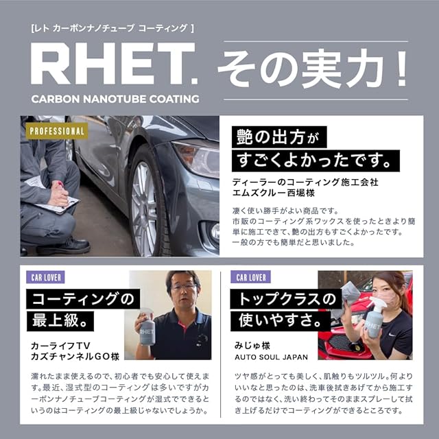 【RHET.】 コーティング剤 車 レト 日本製 大容量 次世代型撥水コーティング 新素材カーボンナノチューブ配合 『驚きの艶と撥水』 カーボンナノチューブコーティング グラフェンコーティング 400ml