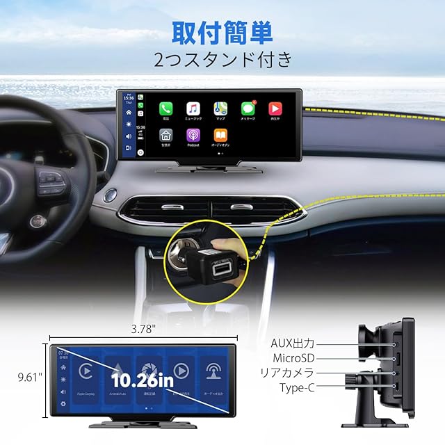 【取り付け簡単&幅広い互換性】ほぼすべての種類の車、車、トラックなどに適しています。 電源供給: Type-C 12-32V電圧、優れた価値と技術により、古い車に追加してモダンな便利さを実現: ワイヤレスCarPlayまたはAndroid Auto、BT、スクリーンミラーリング。