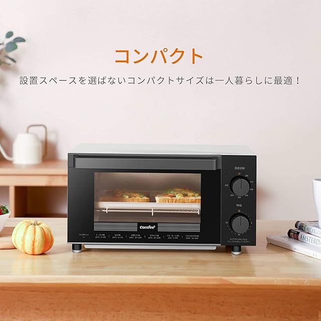 COMFEE' オーブントースター 4枚焼き 12L イマー設定 1200W 上下ヒーター トレー付き お手入れ簡単 省スペース設計 CF-AC121