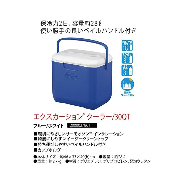 Coleman(コールマン) クーラーボックス エクスカーションクーラー 30QT 容量約28L ブルー/ホワイト 2000027861 アウトドア キャンプ 保冷2日 部活 釣り 28L 防災 ピクニック