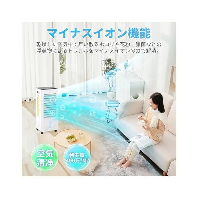 【3面ウェットフィルターで強力冷風&400万マイナスイオン空気浄化】多機能 冷風機 は2025年革新の霧化冷却技術と背面+左面+右面合計3面ウェットフィルターを採用して冷却力は類似品より6倍が増加し、冷房効率は大幅に上げ、短時間に迅速に冷却することを役に立ちます。更に、最大7mまでの送風距離で強力とともに急速に周りの空気を冷やさせ、加湿させ、浄化させ、最後に涼しい風を届けます。スポットクーラー は真ん夏にタンクに氷や付属の保冷バックを入れば自宅に涼しさと快適さを楽しめます。なお、当店の 冷風扇風機 だけは本物の高濃度400万のマイナスイオン機能を搭載されています、お部屋の空気を冷却しながら浄化させ、空気を綺麗且つ新鮮になり、換気と冷却の効果同時に実現し暑く濁った空気が一掃されます。