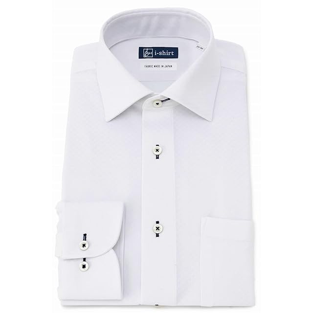 [アイシャツ] i-Shirt 完全ノーアイロン ストレッチ 超速乾 レギュラーフィット 長袖 アイシャツ ワイシャツ メンズ ホワイト 新レギュラーフィット 長袖セミワイドカラー ミニチェック M15120001201 LL84(首回り43cm×裄丈84cm)