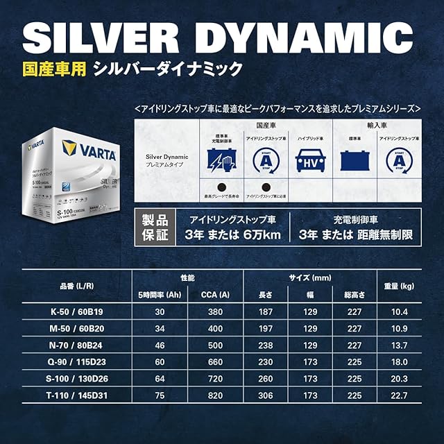 VARTA(バルタ) Silver Dynamic Q-90R/115D23R 国産車用バッテリー アイドリングストップ車/充電制御車/標準車 <長期・メンテナンスフリー> Q-85R互換