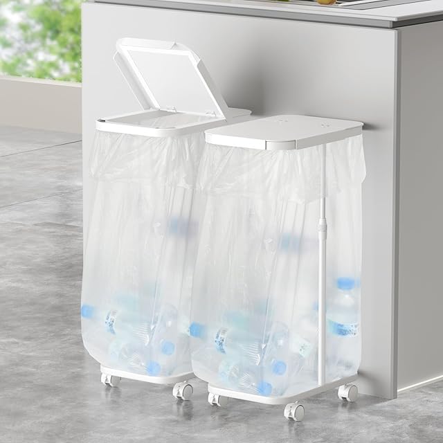 [高さ伸縮可]ゴミ袋ホルダー 20L~90L対応 TTWO ゴミ箱 蓋付き におい遮断 分別ゴミ箱 塵袋ホルダー 30L 45Lなど ゴミ袋スタンド ゴミ捨て簡単 ポリ袋ラック レジ袋スタンド リサイクルスタンド エコ スリム おしゃれ 使いやすい キャスター/アジャスター両方付き (2SET-タテ-ホワイト)