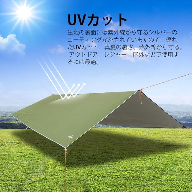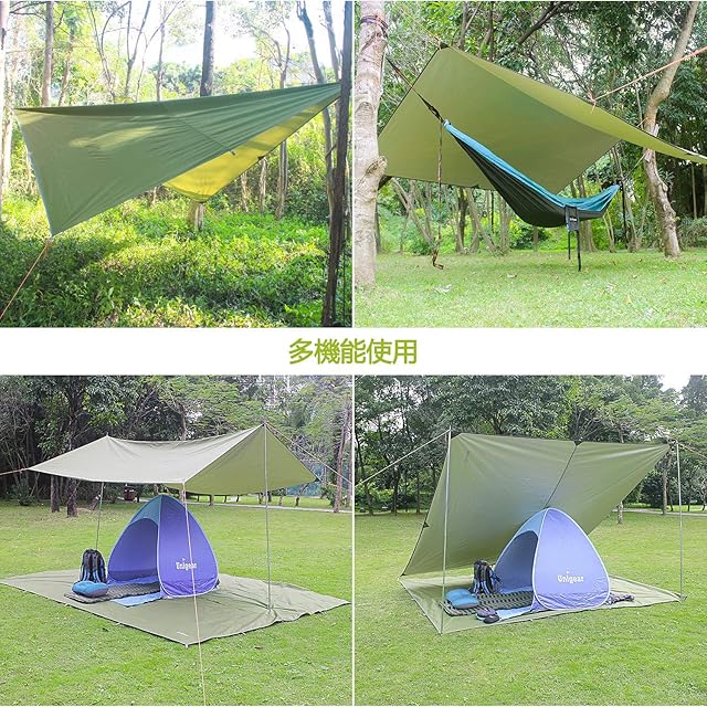 Unigear 防水タープ キャンプ タープ テント 軽量 日除け 高耐水加工 紫外線カット 遮熱 サンシェルター ポータブル 天幕 シェード アウトドア 収納ケース付 2-6人用 4サイズ (アーミーグリーン, L(300*300))
