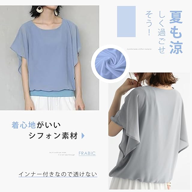【着心地良い半袖tシャツ】柔らて通気性の優れた素材で着心地が快適!軽やかさがあって、華やかに魅せてくれるフレアブラウスは、春夏の定番アイテムのひとつ。今年らしいジョーゼット素材でおしゃれ指数をアップ、可爱さとシャレ感の両立が簡単に叶う。モード感ある甘さで素敵に!上品見えで楽ちん、コーデに抜け感と遊び心をプラス!薄手のシフォンで軽くて着心地よく疲れません。夏も涼しく過ごせます。360度どこから見ても映えて、エレガントな雰田気に。