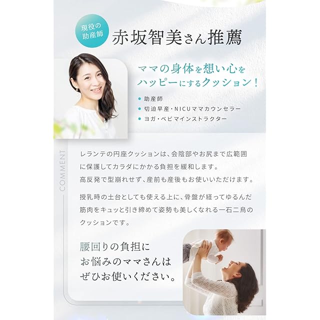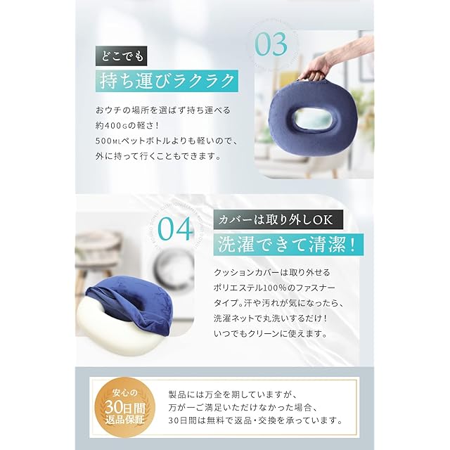 ✅【 なぜ円座クッションがいいの? 】産後 の痛みや 痔 などがあると座るのが大変です。一般的なクッションですと患部に当たってしまいますが、円座クッション は、座った時に患部が当たらないように ドーナツ型 の穴が開いております。 また、沈み込みすぎないよう高反発素材を擁しております。産後の痛みや痔 にお悩みのママに好評を頂いてます!