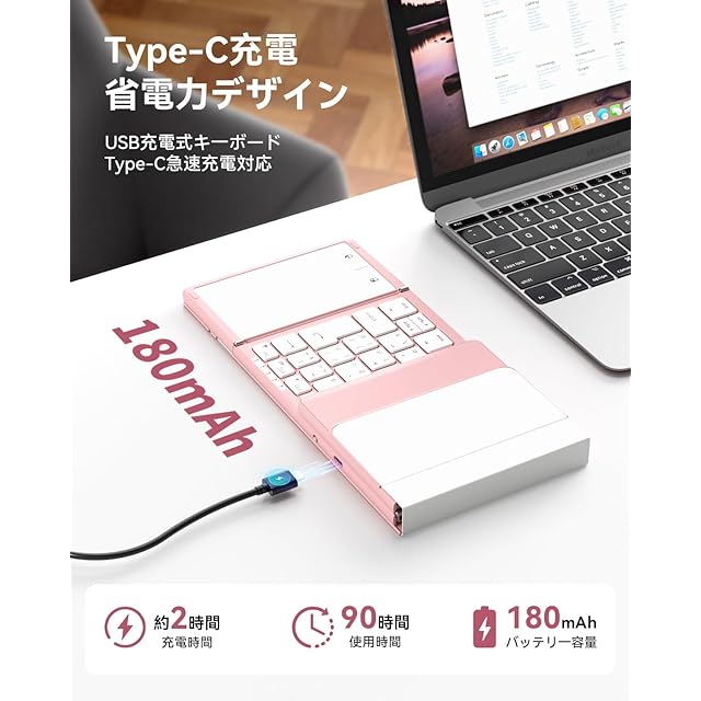 【最新型】Omikamo キーボード bluetooth 折り畳み式 ワイヤレス JIS標準日本語配列 ipad キーボード スマホ マルチペアリング タッチパッド付き iOS/Windows/Android/Mac/Google対応 無線 コンパクト 軽量 薄型 ipad mini パンタグラフ 充電式(ピンク)
