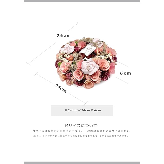[ 2025年 mamawreath 包装済 C ] 誕生日 母 母の日 花 ギフト フラワーギフト プレゼント 春リース お花 プレゼント 玄関用 ピンク色 永遠の意味 Mサイズ:25cm(直径)×6cm(厚み) (ベッピンピンク (WR-12B-MP))