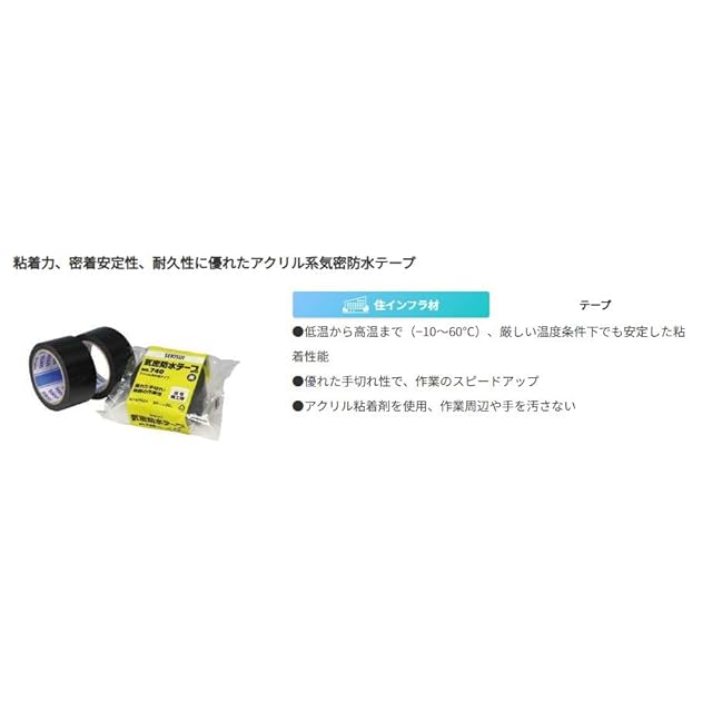 積水化学工業 SEKISUI #740 気密防水テープ 黒 75ミリX20M