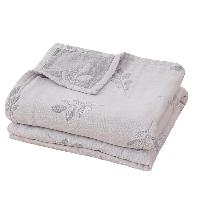 SE ガーゼケット タオルケット ダブル 4重 ガーゼ生地 綿100% お昼寝ケット 肌掛け布団 安心する柔らかさ 吸湿通気 抗菌・防臭・防ダニ 洗える オールシーズン 小葉 グレー 180X200cm 「SE Softexly」