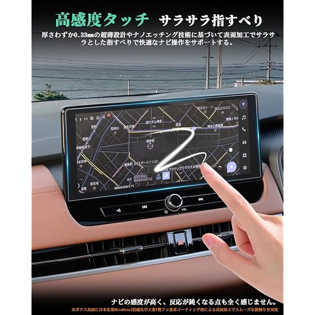 【高感度タッチ・サラサラ指すベり】厚さわずか0.33mmの超薄設計やナノエッチング技術に基づいて表面加工でサラサラとした指すベりで感度が高く、快適なナビ操作をサポ一トする 新型レクサスRX アクセサリー です。