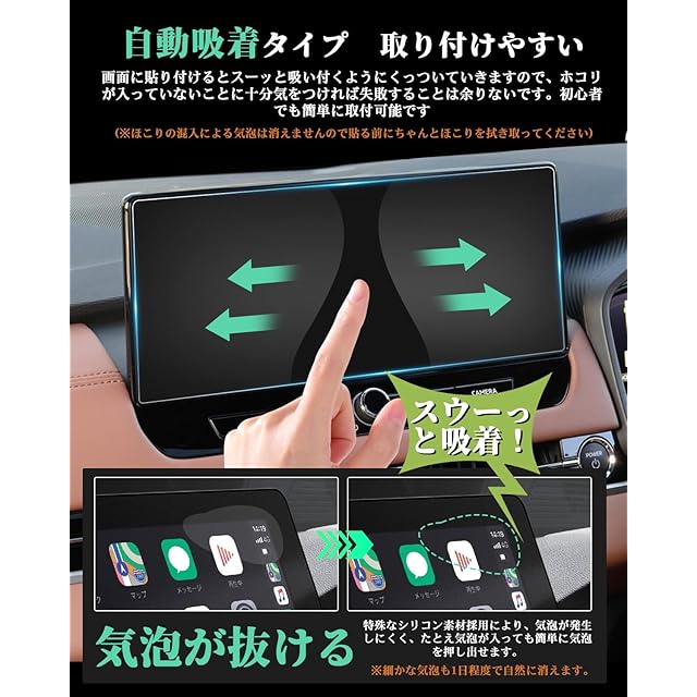 5.【自動粘着・取り付けやすい】 弊社の アルファード 40 系 ガラスフィルム は特殊なシリコン素材採用により、ガラスフィルムを貼り付ける際に気泡が発生しにくいだけではなく、ディスプレイに自動的に粘着し、初心者でも簡単に取付可能です。もし気泡が入っても数日後が経つと徐々に消えます。初回の貼りが失敗しても、剥がして再度貼付けできます。