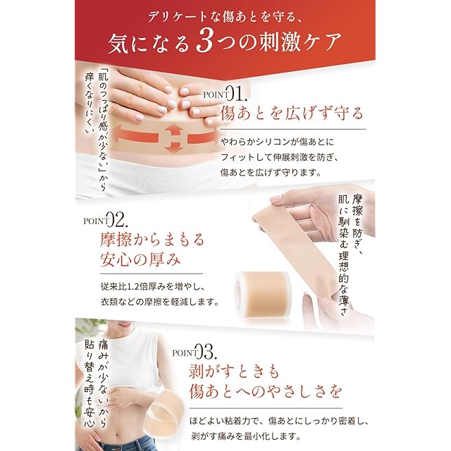 ✅【傷あとを広げず守り、肌もツッパりにくい】やわらかいシリコン素材が傷あとにしっかりフィットし、傷あとが広がらないように安静を保ちます。痒みの原因にもなる“肌のつっぱり感が少ない”やわらかシリコンです。
